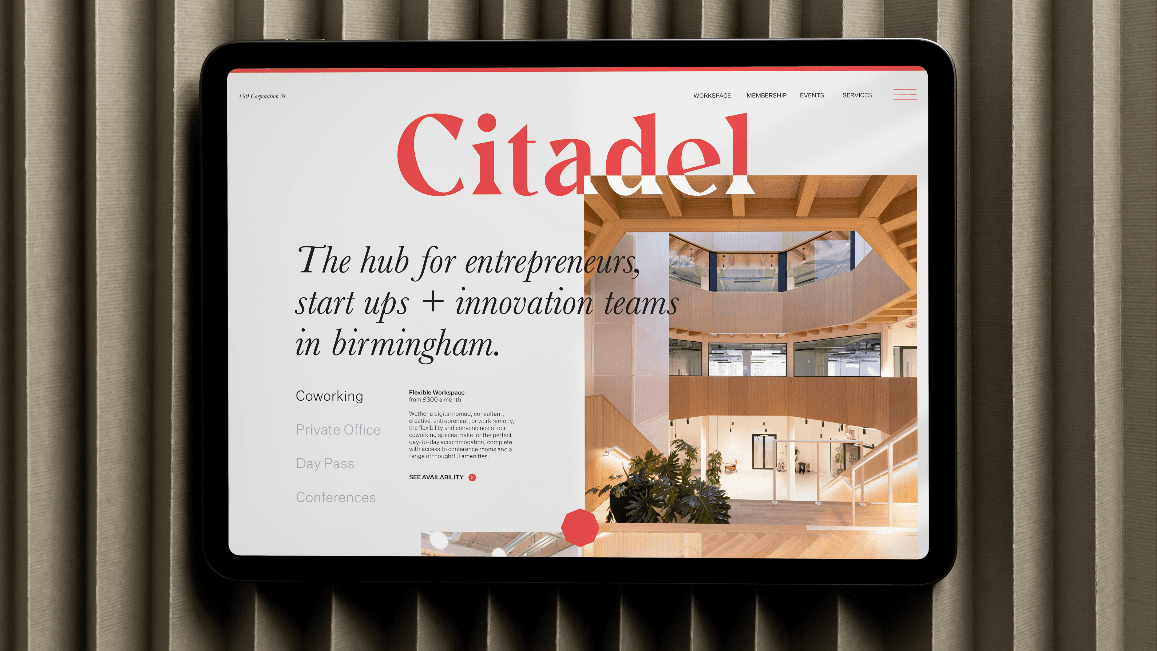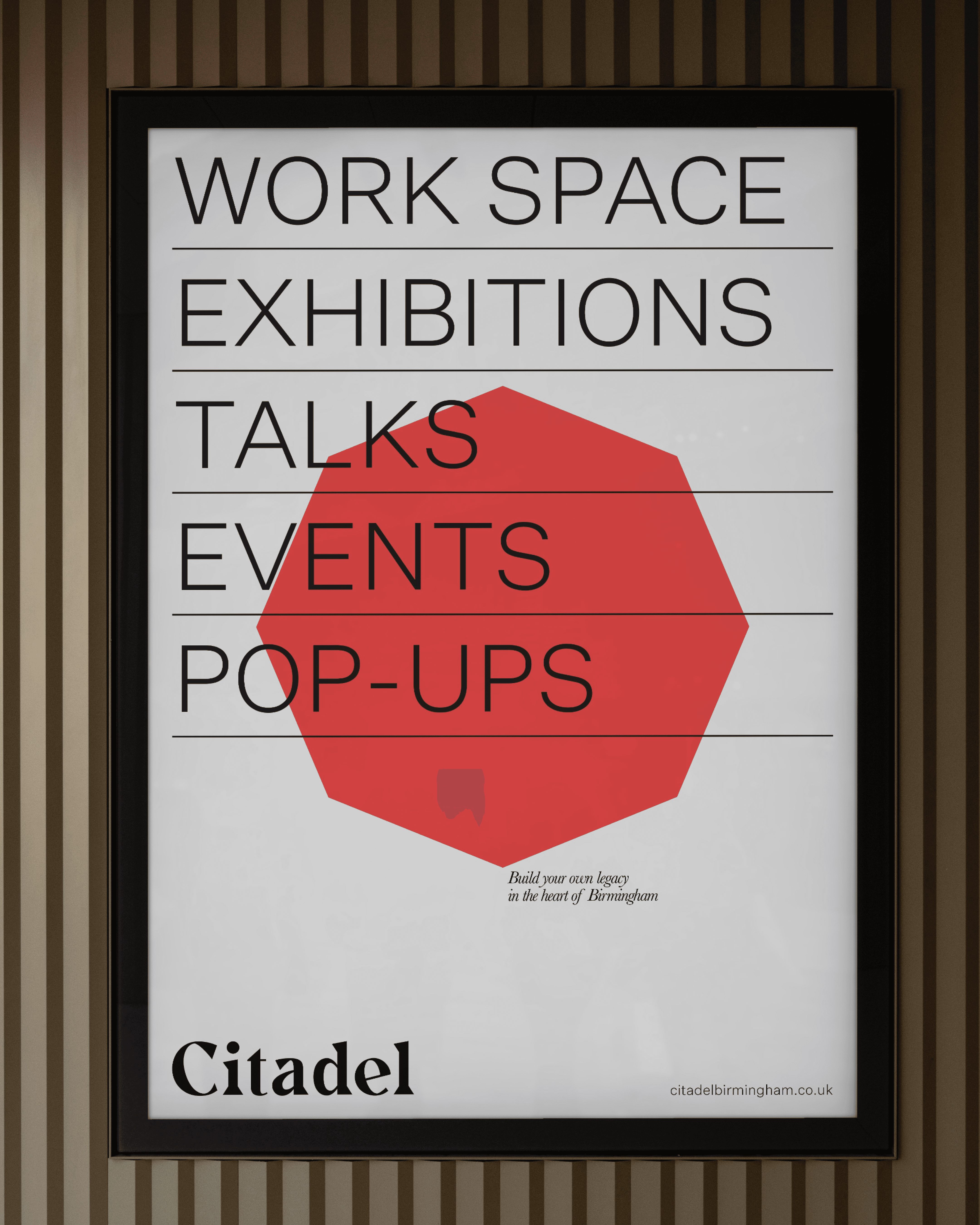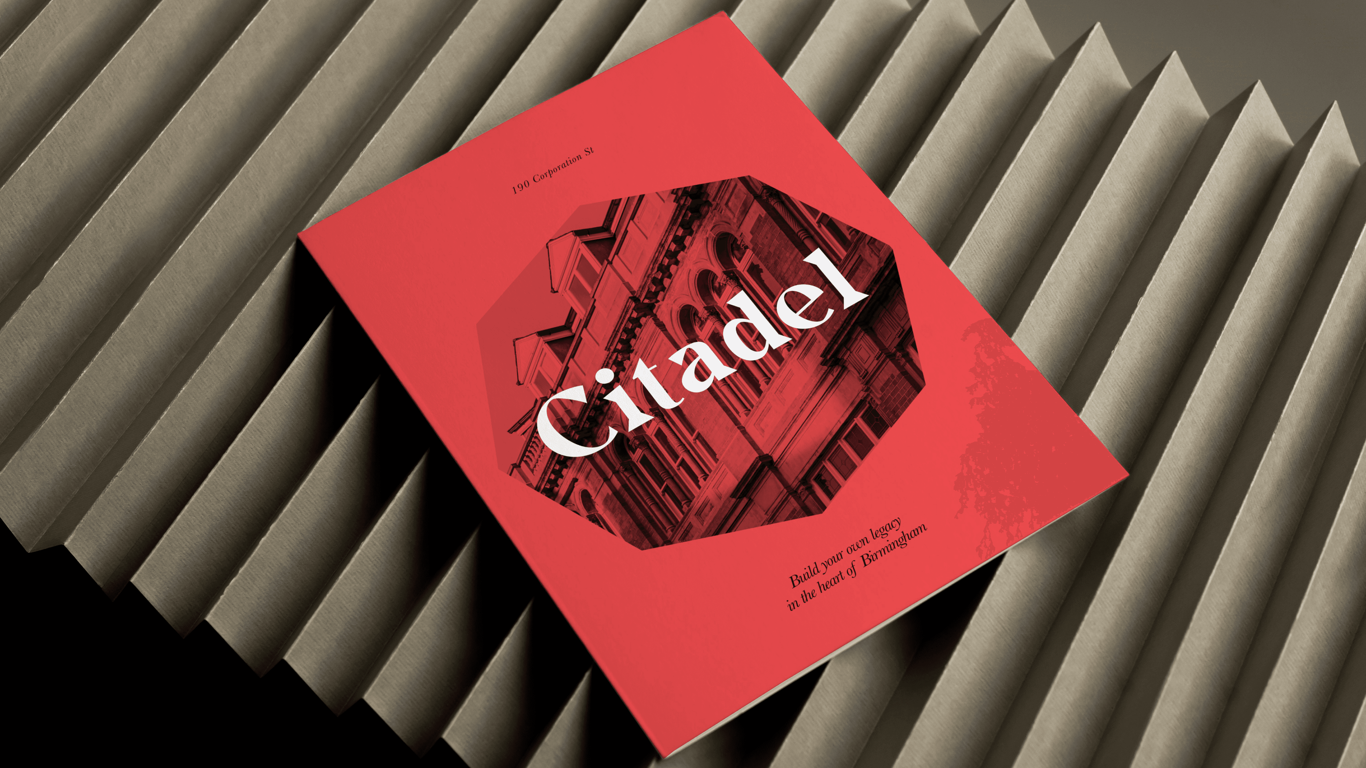 Citadel is an iconic building in the heart of the UK, but its story had become lost in the growing urban environment of Birmingham. Kinrise, a firm who “create spaces that inspire and enable”, wanted to breathe new life into the building as a social workspace whilst acknowledging Citadel’s significant contributions to the spirit of the city. The brand needed to reflect the creative innovation destined for the space, whilst honouring the rich heritage within Citadel’s grand structure.Working closely with unfound.studio to develop a creative strategy, we uncovered an own-able intersection for Citadel, balancing historic legacy of the building with the gritty creative scene Birmingham embodies - a brand narrative that revealed a hidden story.The building’s architectural features were reflected in the visual identity, as well as directional elements which restore movement and intention to the space. Legacy and innovation directed by design.