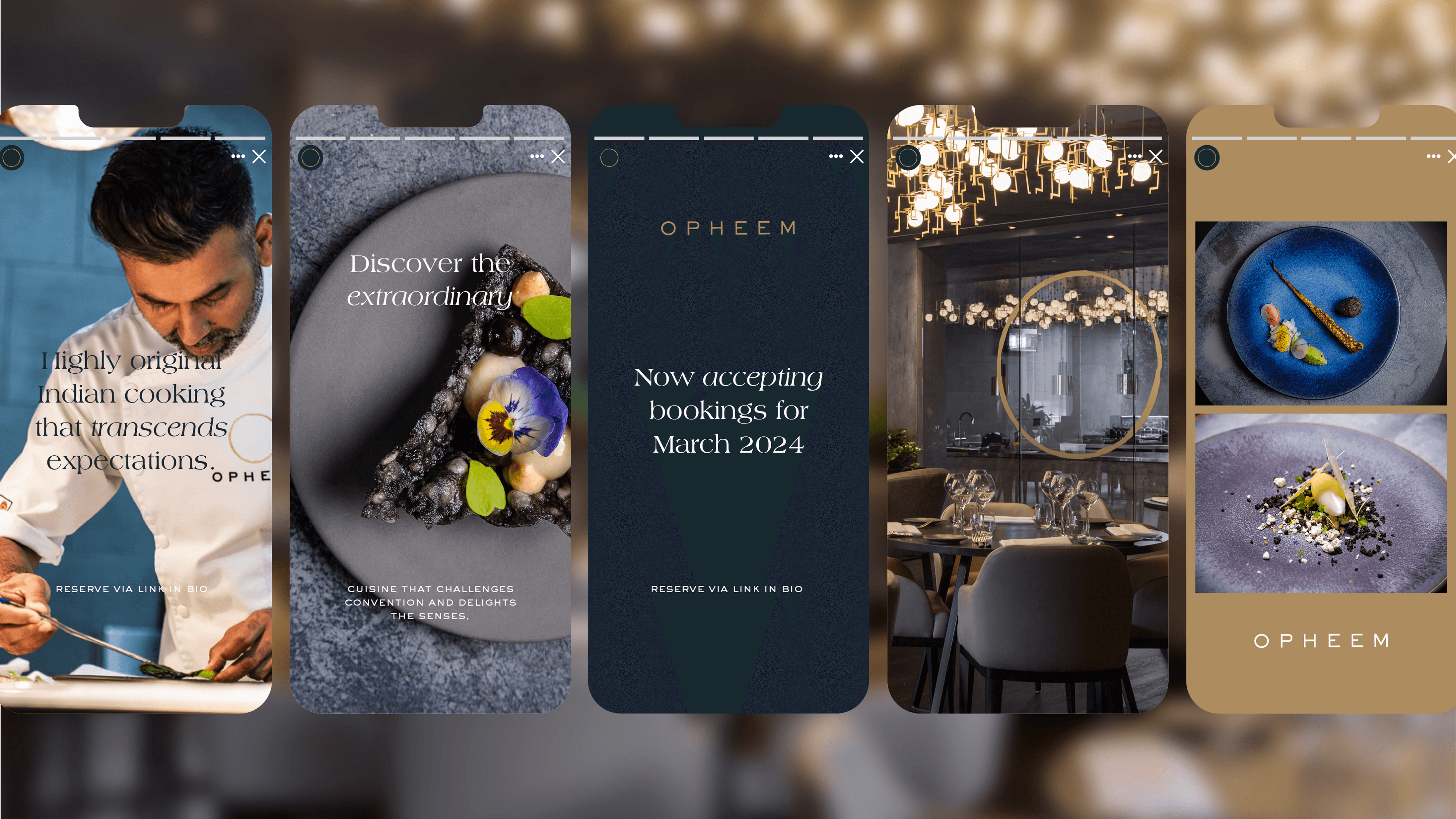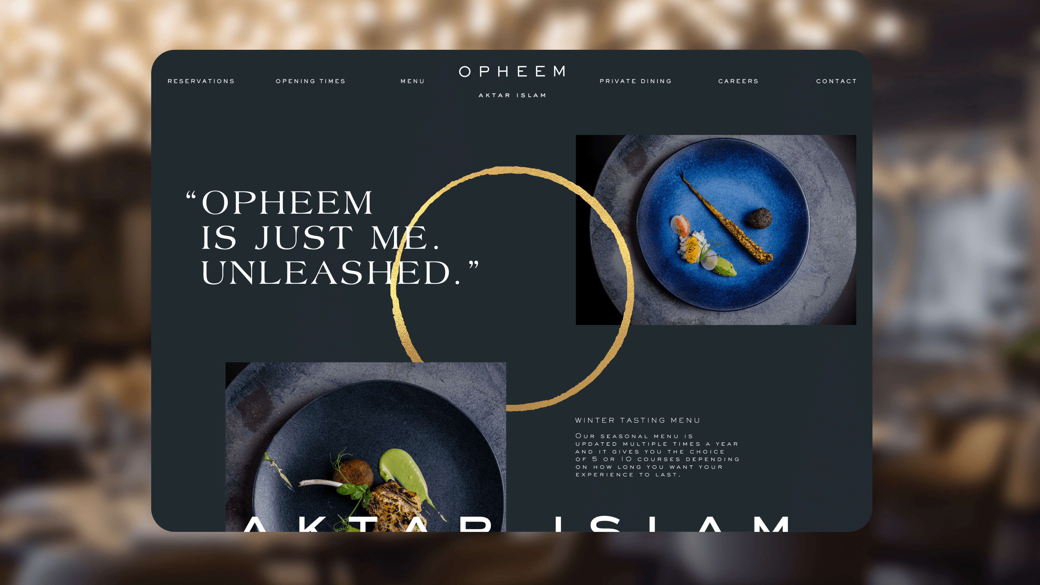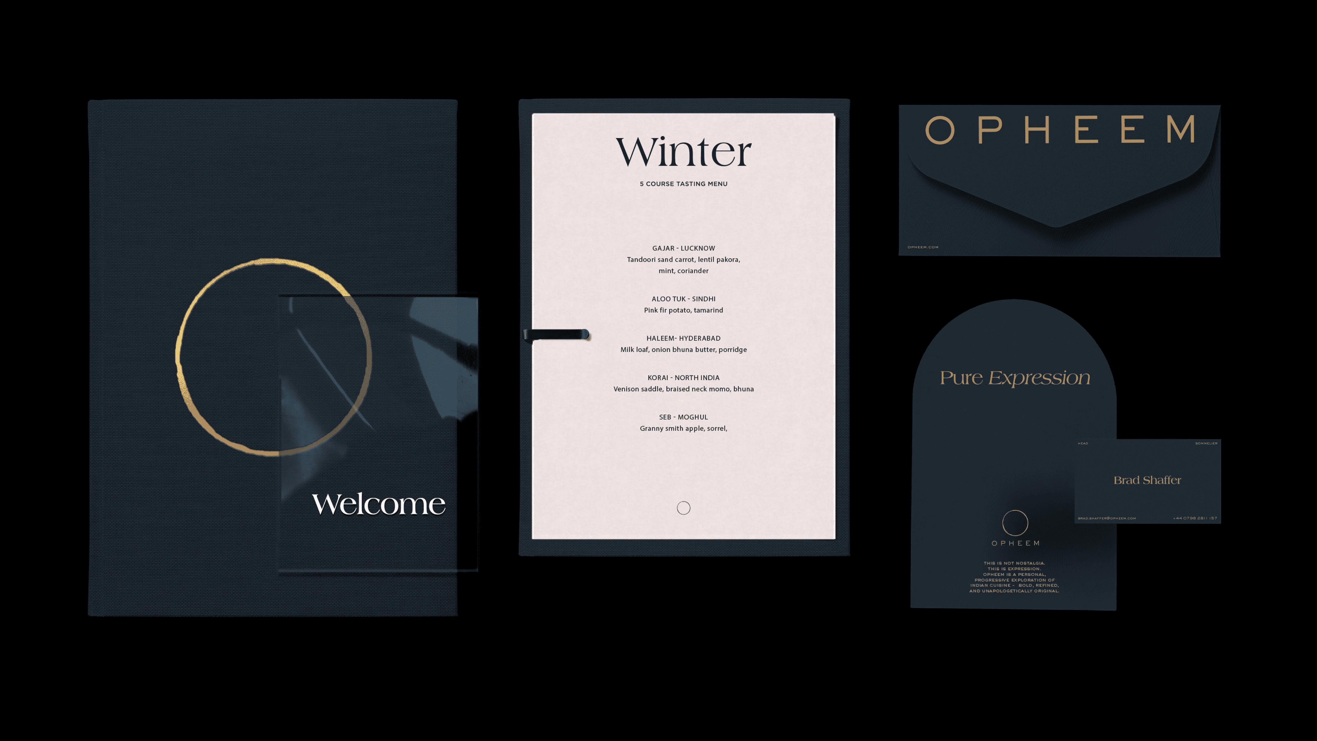 Opheem is a progressive fine-dining restaurant in Birmingham that reimagines Indian cuisine through a contemporary lens - elevating heritage flavours with global technique and bold creativity. Founded by chef-owner Aktar Islam, Opheem has become a defining voice in British gastronomy, earning two Michelin stars for its thoughtful reinterpretation of tradition.The objective of this branding project was to express Opheem’s core philosophy: the coming together of flavours, cultures, and people through food. Central to the identity is a rough-cut circular motif - an imperfect, tactile form that symbolises unity, shared experience, and the layered journey of dining. Its raw character contrasts with refined typography and structured layouts, reflecting the balance of precision and instinct at the heart of the restaurant.Inspired by Opheem’s culinary narrative and sense of ritual, the resulting system is elegant yet expressive, designed to live confidently across menus, print, digital, and spatial touchpoints - inviting guests into an experience defined as much by connection as by cuisine.